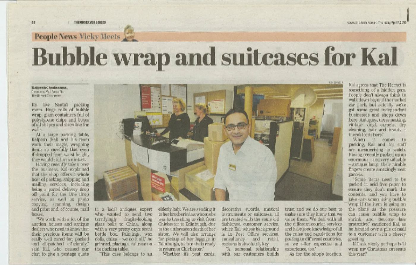 Working alongside Abi Taplin, Kal and Judy have developed the Chichester branch into a reliable local hub for customers who need more than a standard parcel service. Today, the store supports small and medium-sized businesses, home-based businesses and personal customers with a wide range of day-to-day needs, from worldwide shipping and secure packing to professional print services and mailbox solutions.